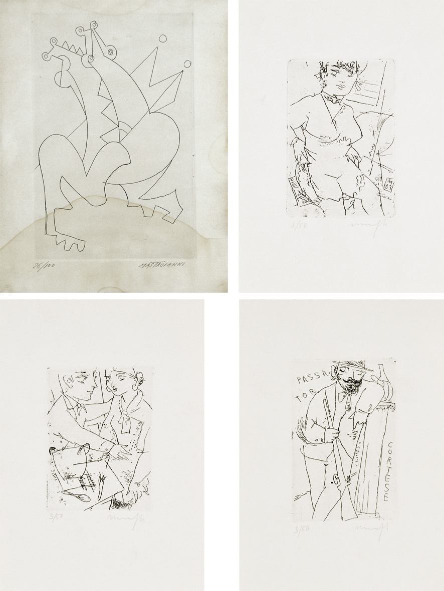 MASTROIANNI U. - MANFREDI A. Soggetti vari lotto di 4 acqueforti firma e...