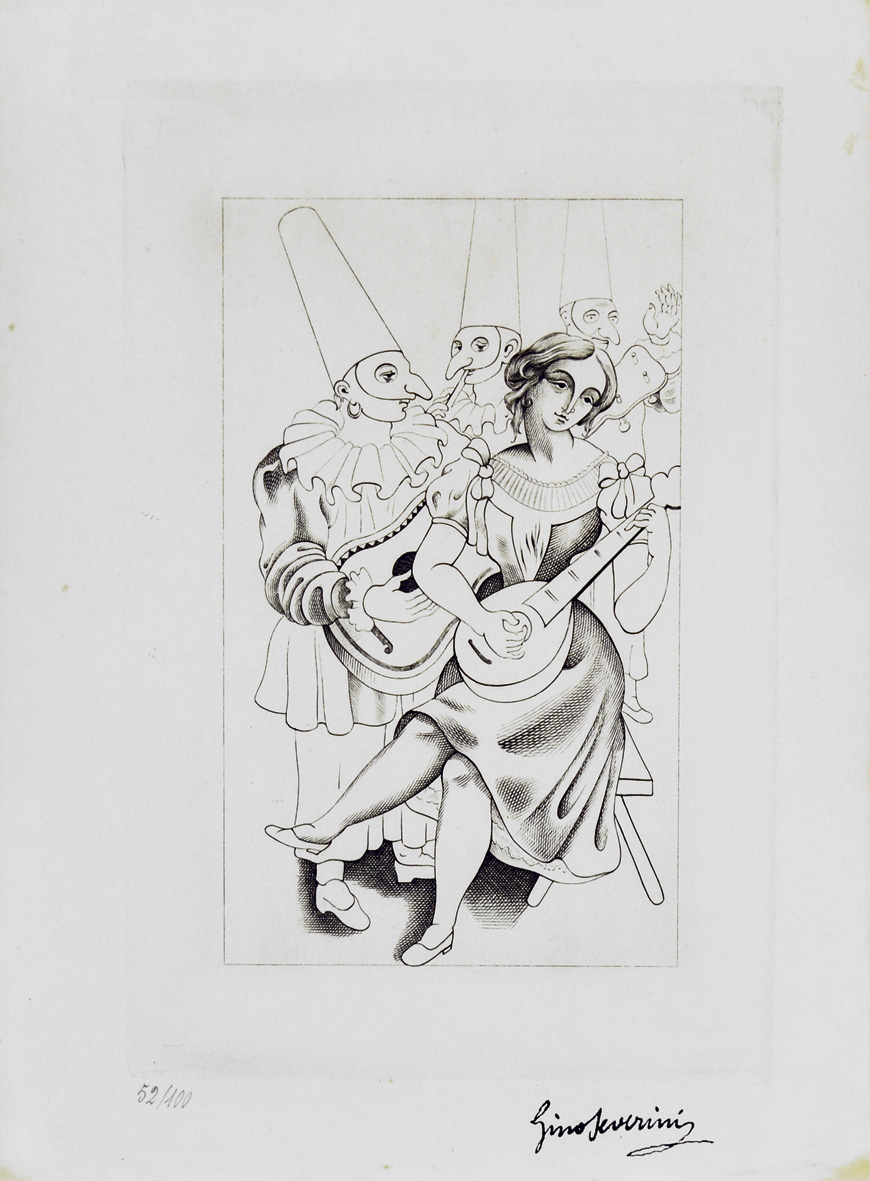 SEVERINI GINO (D'APRES) Cortona 1883 - Parigi 1966 Maschere acquaforte es. 52/100 23,5x15,5 firma in basso a destra tiratura in basso a sinistra