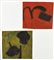 IACCHETTI PAOLO Milano 1953 Verde 3265, 1989 - Rosso 3279, 1990 lotto di 2 tecniche miste su carta 23x26 cad. firma e data al retro esposizioni: Galleria d'Arte Contemporanea Padova - etichetta al retro