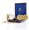 C. tripla in oro giallo 18 kt interamente incisa e con decori in smalto nero. Q. in smalto con numeri romani. M. con scappamento ad ancora, carica a chiavetta. Quadrante, cassa e movimenti firmati. Completo di chiave in oro con piccola catena ed astuccio del rivenditore.