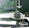 C. n. F304544 in acciaio con fondello e corona a vite, lunetta verde graduata e girevole, vetro zaffiro. Q. nero con indici e lancette luminescenti, secondi al centro e data al 3. M. a carica automatica. Bracciale Oyster Fliplock in acciaio. Quadrante, cassa, movimento e bracciale firmati. Completo di astuccio e certificato del 04/2004.