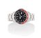 C. stainless steel with screwed case back and crown, red/black revolving bezel and sapphire crystal. D. black with luminous indexes and hands, centre seconds and central hand for the second time zone, date at 3. M. self-winding. Stainless steel Oyster bracelet. Dial, case, movement and bracelet signed.