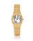 C. n. 448255 in oro giallo 18 kt con scanalature orizzontali a riprendere il decoro del bracciale, fondello chiuso da viti e vetro zaffiro. Q. in madreperla con indici in brillanti. M. al quarzo. Bracciale in oro giallo 18 kt. Quadrante, cassa, movimento e bracciale firmati.