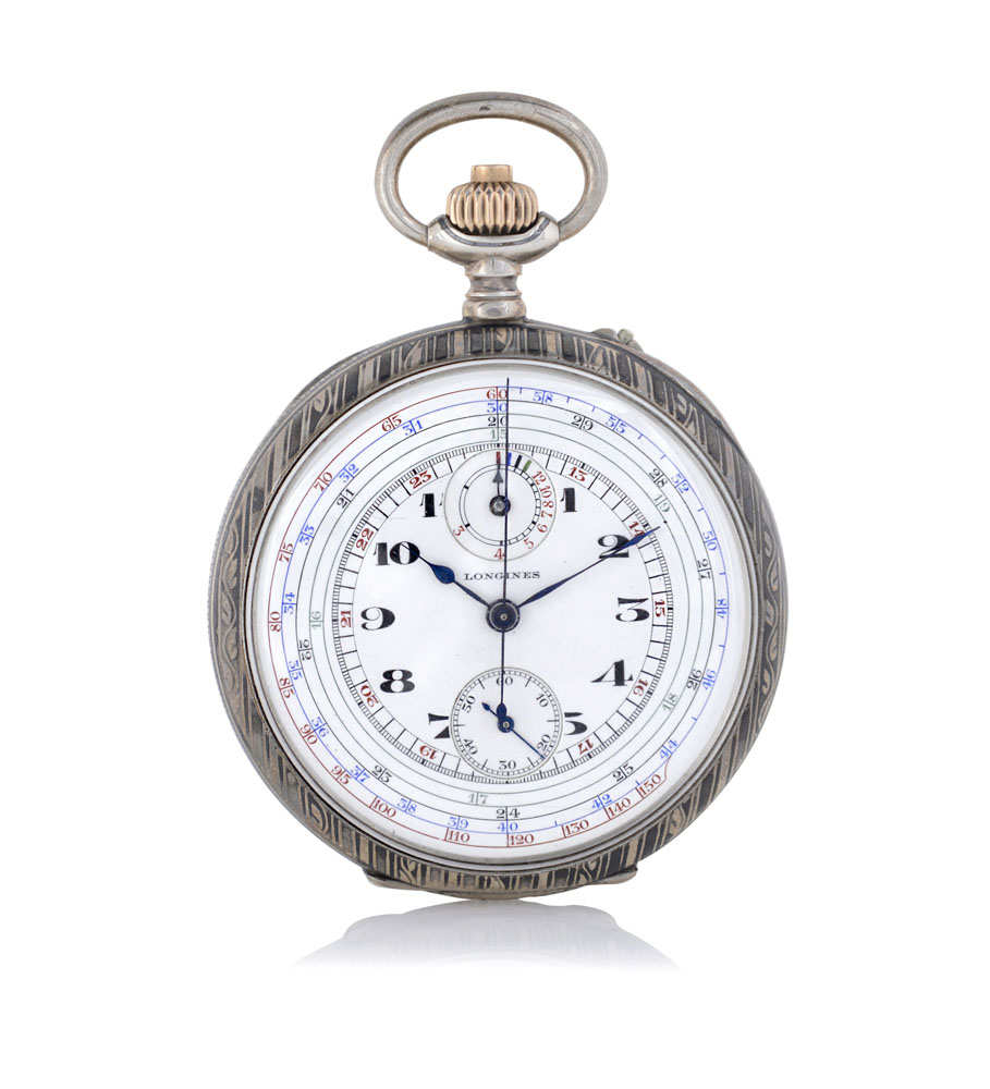 LONGINESLONGINES CRONOGRAFO ANNI '20. C. in argento e niello con pulsante in...