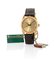 C. n. E330366 in oro giallo 18 kt con fondello e corona a vite, lunetta godronata e vetro zaffiro. Q. champagne con indici applicati, secondi al centro e data al 3. M. a carica automatica. Quadrante, cassa e movimento firmati. Completo di cinturino e fibbia in oro giallo 18 kt originali.