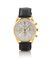 C. n. 13076 in oro giallo 18 kt con pulsanti tondi. Q. argentato con indici e numero arabo applicati, contatore a 30 minuti e 12 ore, scala tachimetrica periferica. M. a carica manuale. Quadrante, cassa e movimento firmati. Completo di cinturino originale.
