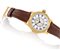 C. n. 876.5239 massiccia in oro giallo 18 kt con fondello a cerniera, movimento protetto da vetro, lunetta graduata e girevole. Q. bianco con numeri romani smaltati, divisione a 180 gradi, secondi e disco in rotante in madreperla al centro. M. a carica manuale. Quadrante, cassa e movimento firmati. Completo di cinturino, fibbia, astuccio e certificato del 07/1991 originali.