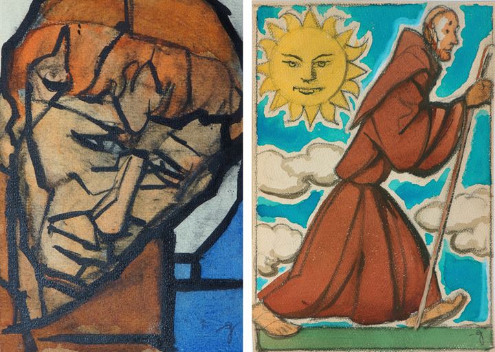 B - "Frate Sole" 1950, cm 31x21,5, opera siglata