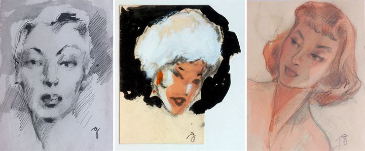 GOLIA (Eugenio Colmo) Torino 1885 - 1967 "Volti femminili" Tre tecniche...