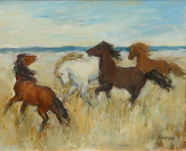 STROPPA LEONARDO Torino 1900 - 1991 "Cavalli in corsa" 40x50 olio su tela...