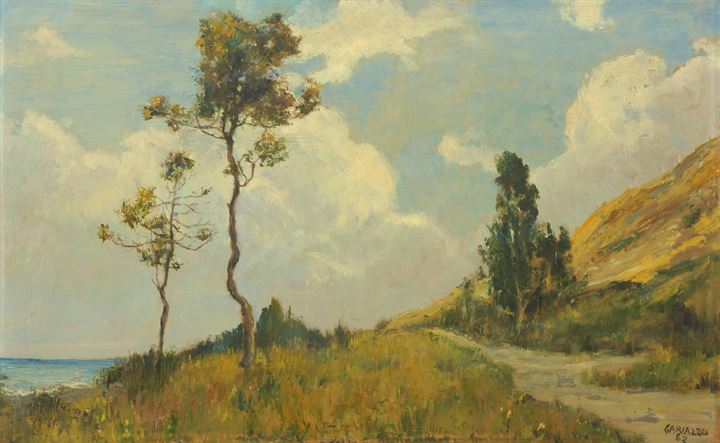 GARIAZZO PIER ANTONIO Torino 1879-1964 "Stradina lungo il mare" 1962 60x100...