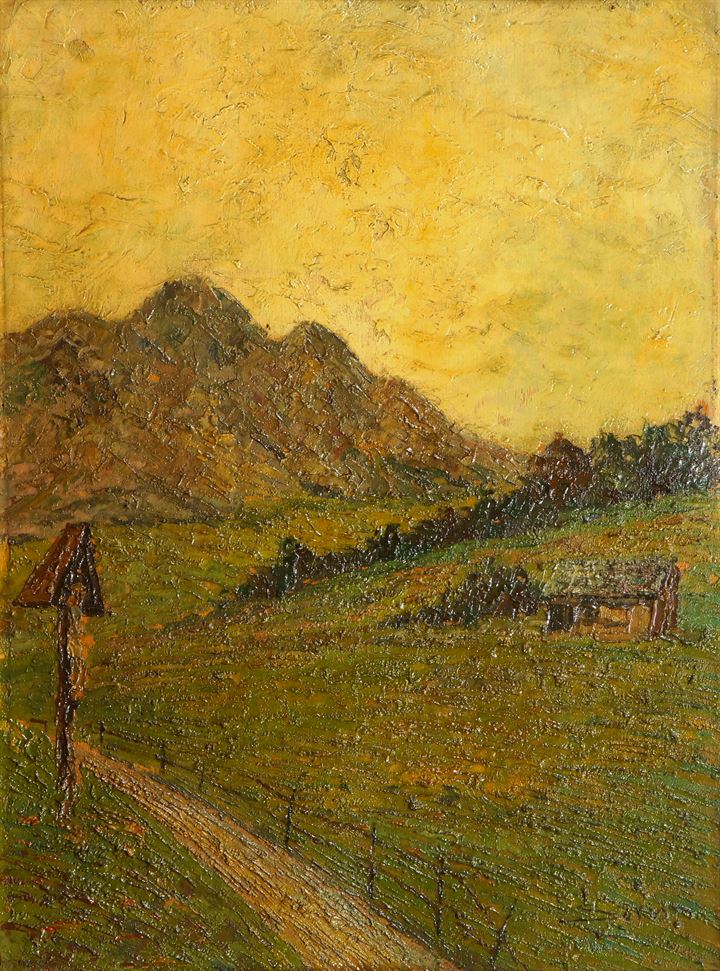 PITTORE NON IDENTIFICATO "Crocefisso in montagna" 40x30 olio su tavoletta...