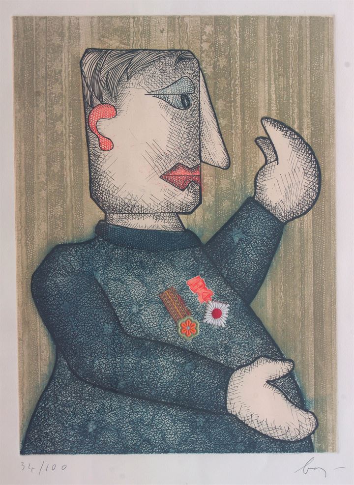 BAJ ENRICO Milano 1924 – 2003 Vergiate "Guerriero" 70x50 foglio, 49x36...