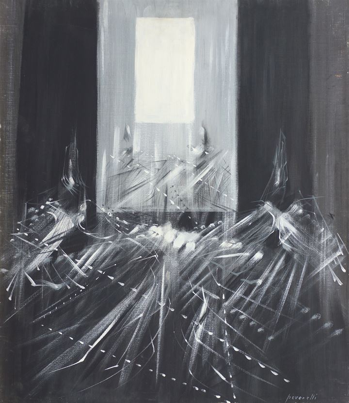 PEVERELLI CESARE Milano 1922 - 2000 "L'ecran" 1965 70x60 olio su tela Opera...