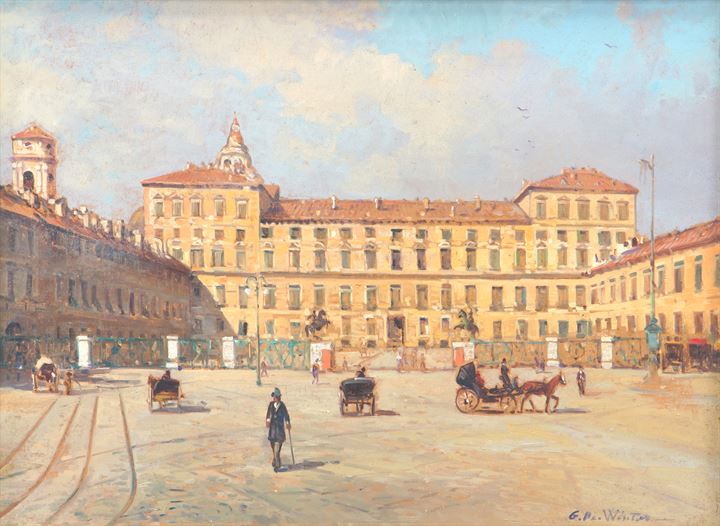 DE WINTER GIUSEPPE I XIX/XX SECOLO "Torino - Palazzo Reale" 30x40 olio su...