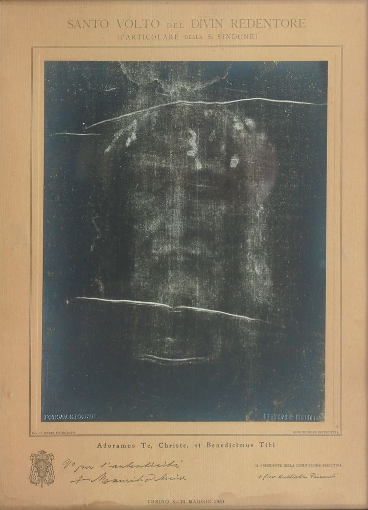Fotografia eseguita con pellicola ortocromatica in occasione dell'ostensione della Sindone, Torino