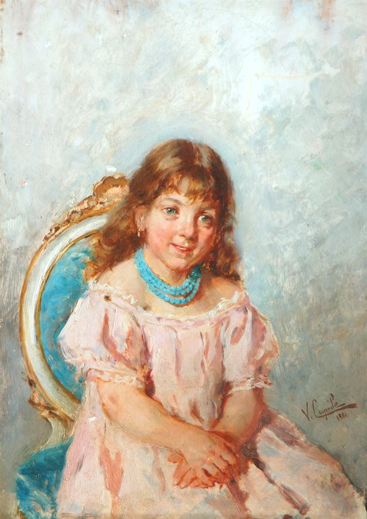 CAPRILE VINCENZO Napoli 1856 - 1936 "Ritratto di bambina" 1881 30x21,5 olio...