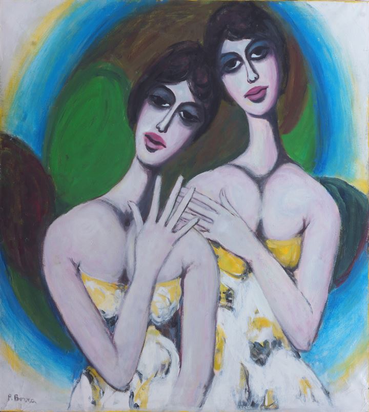 BORRA POMPEO Milano 1898 - 1973 "Due donne" 100x90 olio su tela Opera firmata...