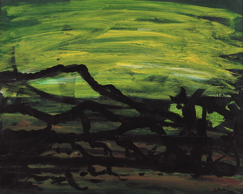 PIERO MAGGIONI Monticello Brianza (Co) 1931 - Vigano' (Co) 1995 Senza titolo olio su tavola cm. 95x119, firma in basso a destra, opera registrata al numero BB385-AG presso l'Archivio Piero Maggioni come da dichiarazione del figlio Antonio su foto.