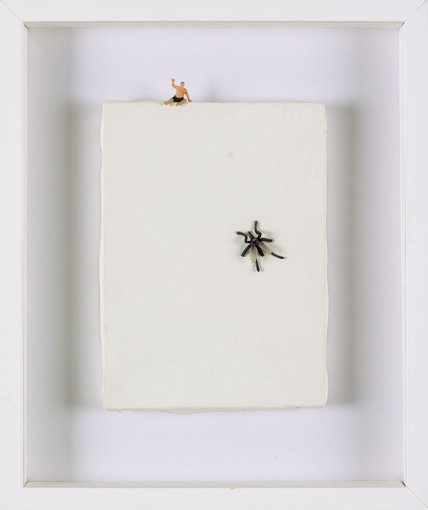 FRANCESCO DE MOLFETTA Milano 1979 Piatto ricco..., 2005 applicazioni su tela cm. 19x13, firma, titolo e anno al retro, dichiarazione d'autenticità dell'artista su foto.