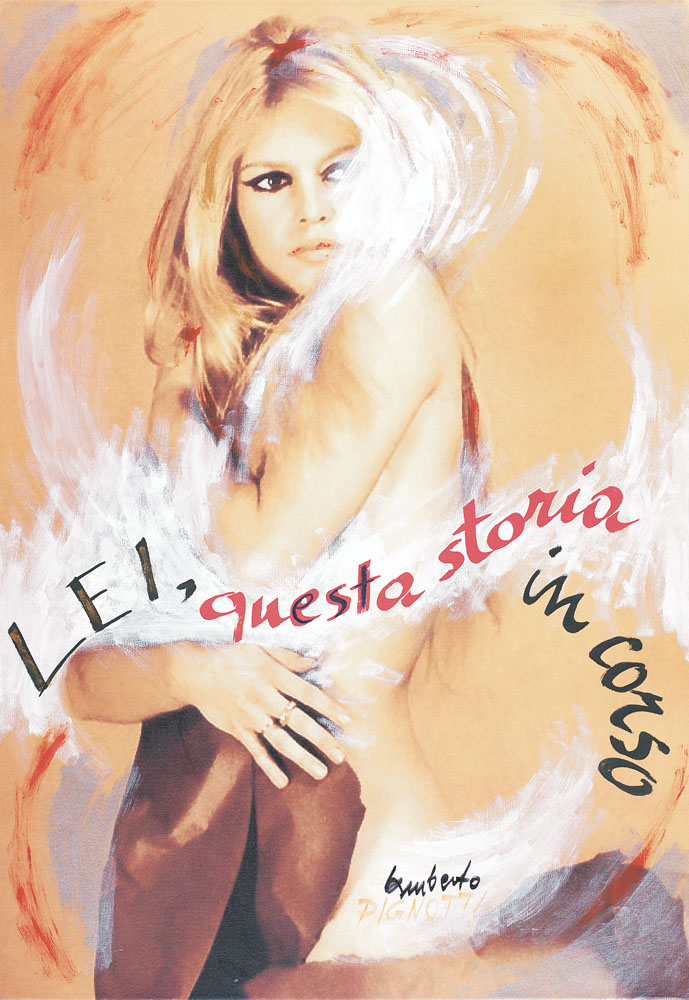 LAMBERTO PIGNOTTI Firenze 1926 Lei, questa storia in corso olio su tela preparata al computer cm. 99x69, firma in basso al centro, pubblicato sul catalogo della mostra "Lamberto Pignotti, parole immagini e..." tenutasi dal 26 giugno al 26 settembre 2008 presso la Galleria Armanda Gori (PO), pagina 192, opera senza cornice.