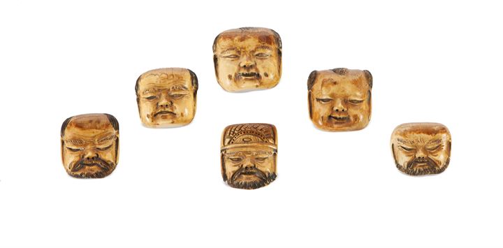 LOTTO DI SEI NETZUCHE' H. cm da 4 a 5 In avorio, raffiguranti volti orientali