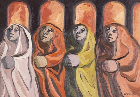 SAVERIO TERRUSO Monreale (Pa) 11/01/1939 - Milano 03/03/2003 Oranti olio su...
