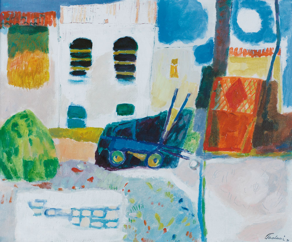 ENRICO PAULUCCI Genova 03/10/1901 - Torino 22/08/1999 Cascina nelle langhe, 1971 olio su tela cm. 45x55, firma e anno in basso a destra, titolo, anno, firma ed etichetta Arte Genova 2011 al retro, dichiarazione d'autenticità ed archivio A 310 del 15 Aprile 2005 su foto.