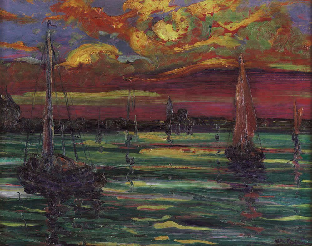 CARLO CARRA’ Quargnento (Al) 11/02/1881 - Milano 13/04/1966 Marina, (1907) olio su tavola cm. 31,5x39,5, firma in basso a destra, etichetta della Galleria Pesaro (MI) al retro, opera registrata al numero 06/07 presso l'Archivio delle Opere di Carlo Carrà come da dichiarazione a cura del figlio Massimo su foto.