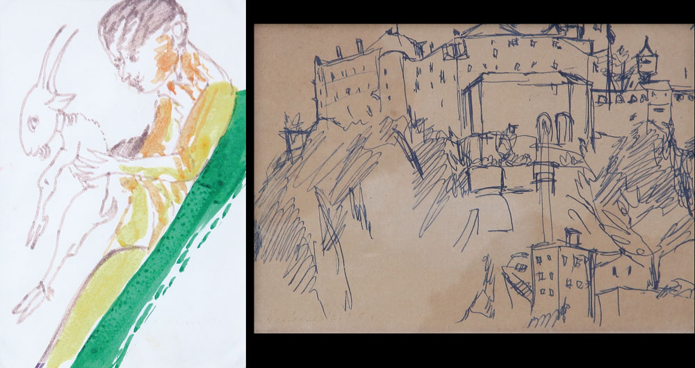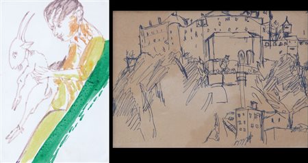 REMO BRINDISI Roma 25/04/1918 - Milano 25/07/1996 Pastorale, 1983 pennarello su carta cm. 16x11, firma in basso a destra, opera archiviata a cura della Galleria D'Arte Pace (MI) come da dichiarazione su foto. Salisburgo, 1956 china su carta intelata cm. 14x19,5, firma e anno in basso a sinistra, firma e dichiarazione d'autenticità dell'artista al retro, opera archiviata a cura della Galleria D'Arte Pace (MI) come da dichiarazione su foto.