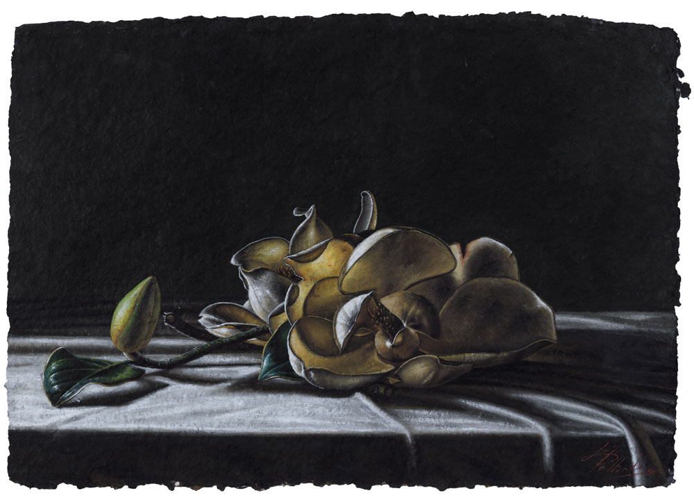 LUIGI PELLANDA Bassano del Grappa (VI) 1964 Fiori di Magnolie, 1998 olio su carta artigianale cm. 37x52, firma e anno in basso a destra, dichiarazione d'autenticità dell'artista su foto.