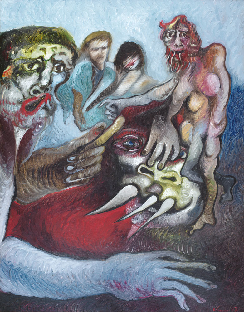 NICOLA NAIMO Stilo (Reggio Calabria) 1951 Senza titolo, 1987 olio su tela cm. 90x70, firma in basso a destra.