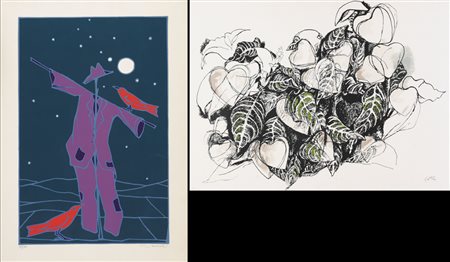 AUTORI VARI RENATO GUTTUSO Natura morta litografia su carta cm. 50x70, esemplare 92/120, firma in basso a destra. FRANCESCO CASORATI Spaventapasseri serigrafia su carta cm. 70x50, esemplare 92/100, firma in basso a destra.