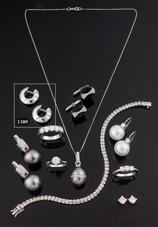 COPPIA DI ORECCHINI Peso gr 10,0 in oro bianco, a cerchio, con diamanti...