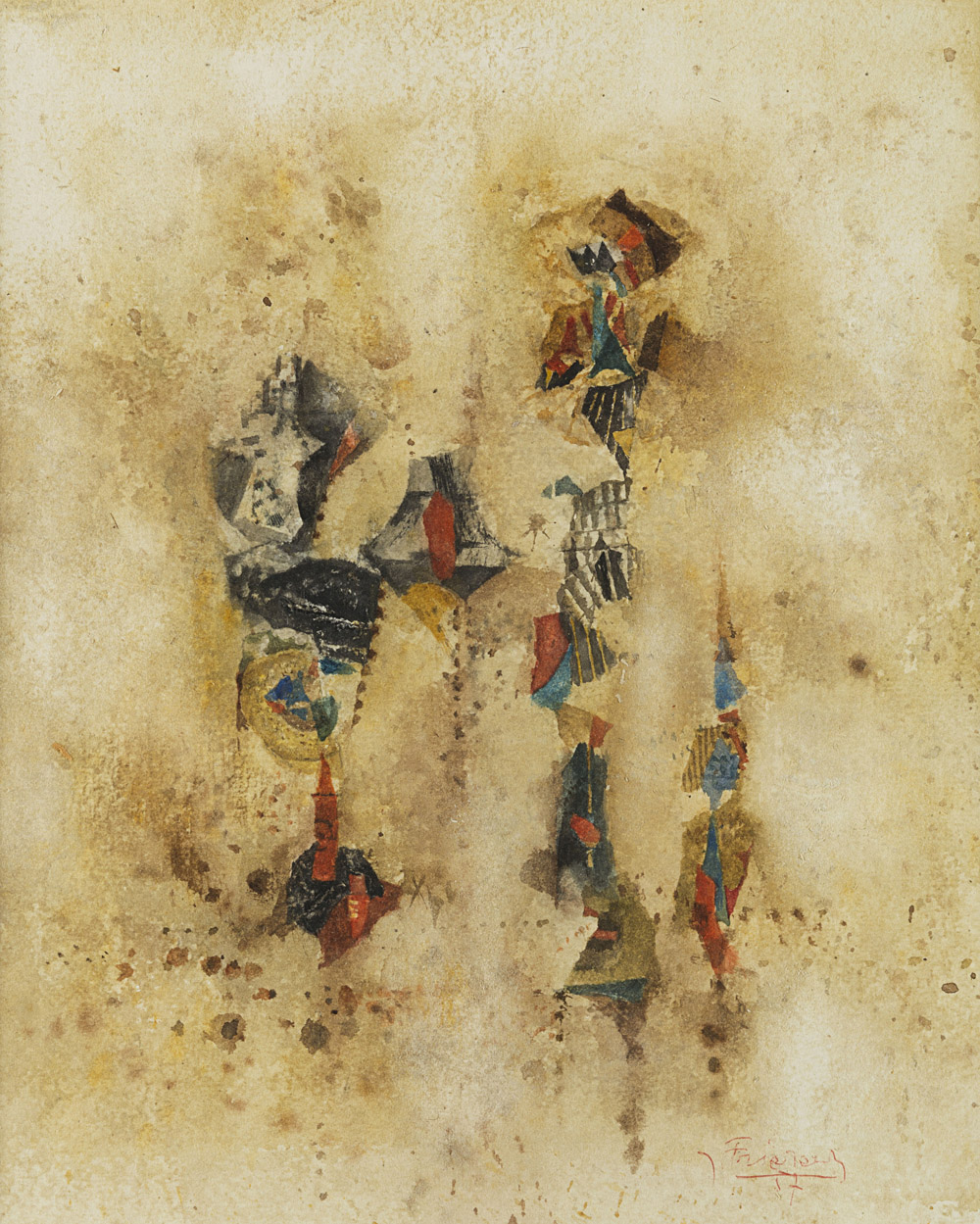 Johnny Friedlaender (Pless 1912 - Parigi 1992) - "Senza titolo" 1957 tecnica mista su carta, cm 28x23 Firmato e datato 57 in basso a destra Provenienza Collezione privata, Milano