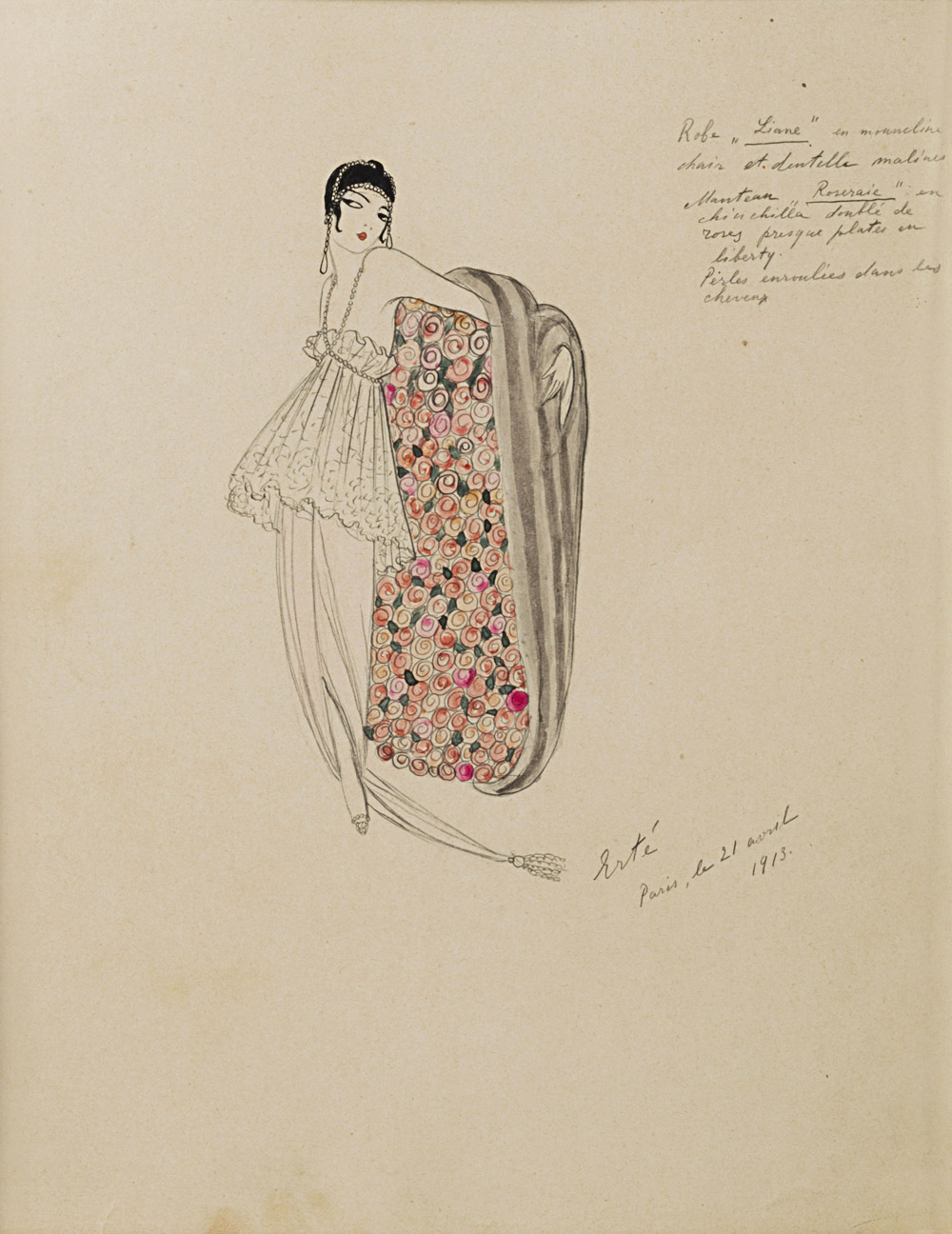 Erté (San Pietroburgo 1892 - Parigi 1990) - "Costume" 1913 tecnica mista su carta, cm 32x24 Firmato e datato “Paris, le 21 avril 1913” Provenienza Studio Marconi, Milano Collezione privata, Milano