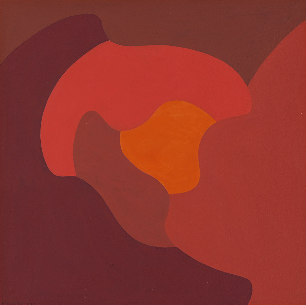 Equipo 57 - "C 18" 1961 tempera su carta, cm 32x32 Firmato e datato 1961 in basso a sinistra Provenienza Collezione privata, Bologna Esposizioni "Da Fontana a Yvaral" Collezione della Pinacoteca di Verucchio, 27 luglio - 28 settembre 2008, ill. in catalogo a p. 71