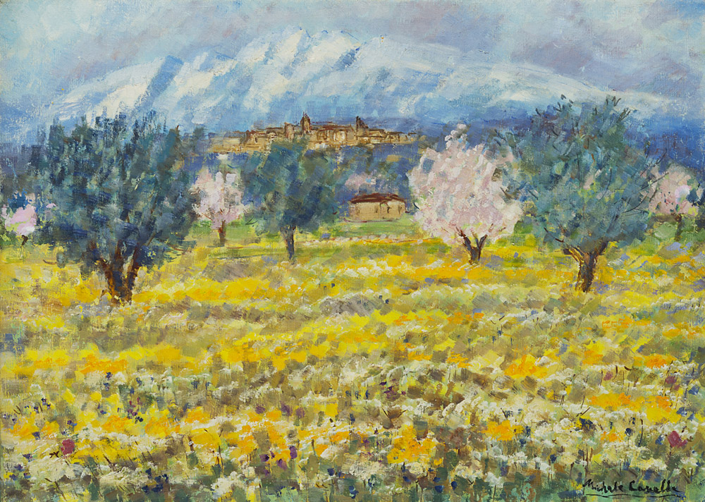 Michele Cascella (Ortona 1892 - Milano 1989) - "Paesaggio" olio su tela, cm 50x70 Firmato in basso a destra Parere verbale di autenticità rilasciato dall'Archivio Michele Cascella a cura della Torcular Srl, Milano