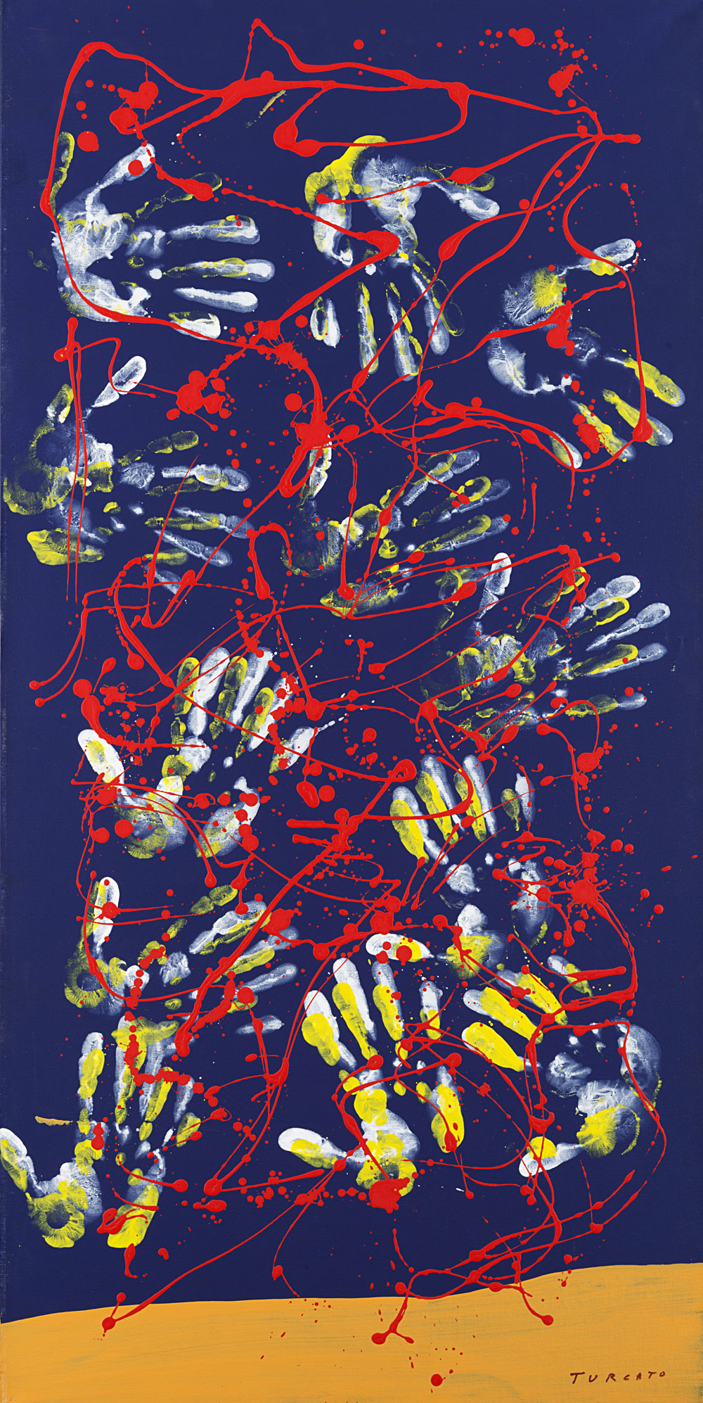 Giulio Turcato (Mantova 1912 - Roma 1995) - "Senza titolo" tecnica mista su tela, cm 120x60 Firmato in basso a destra Provenienza Galleria d'Arte Il Canale, Venezia Collezione privata, Milano Opera accompagnata da certificato di autenticità su fotografia rilasciato dall'Archivio Giulio Turcato a cura di Ettore Caruso, Roma, con il n. EP91024BM10BB