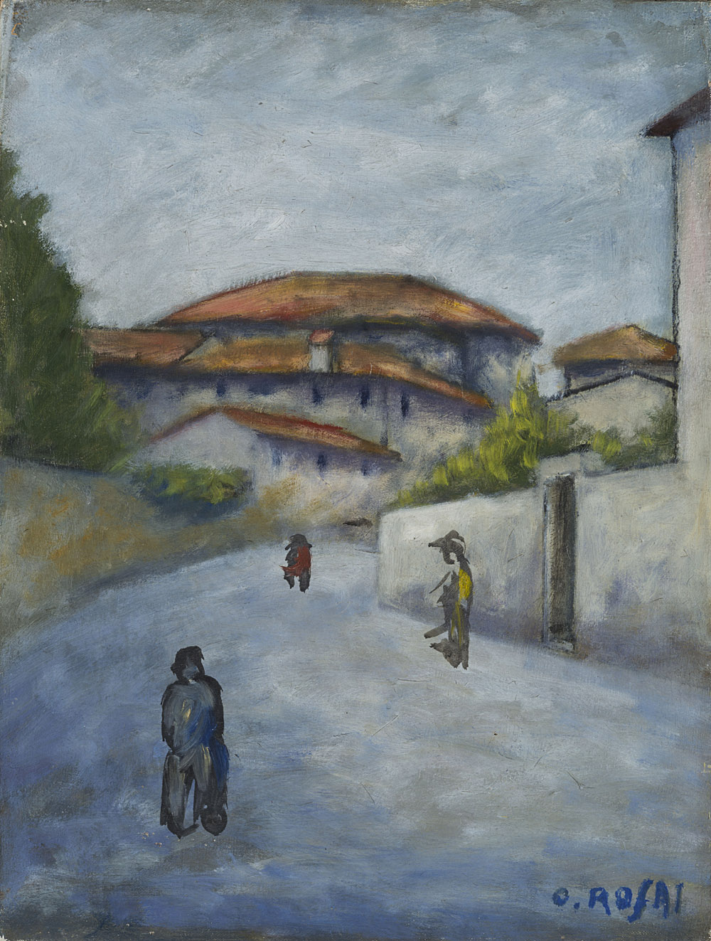 Ottone Rosai (Firenze 1895 - Ivrea 1957) - "Piccolo paese" 1952 olio su tela, cm 50x37 Firmato in basso a destra Provenienza Galleria la Coppia, Bologna Opera accompagnata da certificato di autenticità su fotografia rilasciato da Luigi Cavallo
