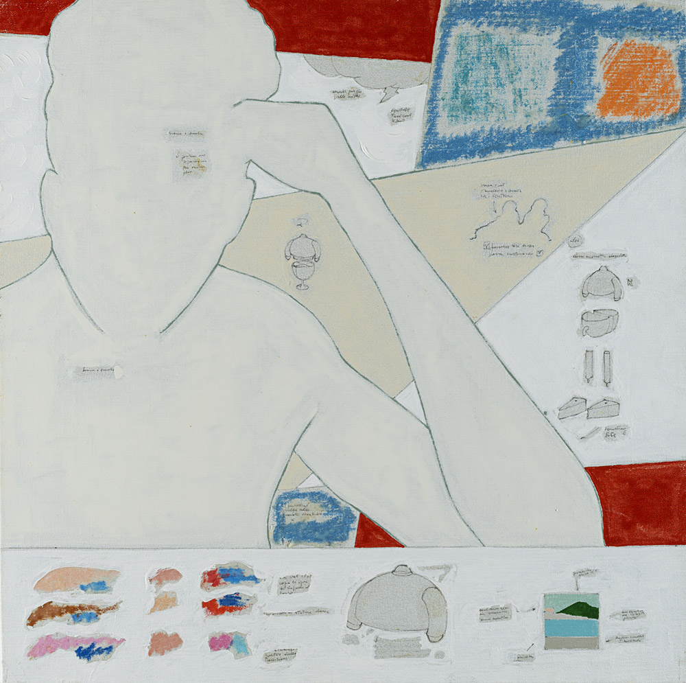 Gianfranco Baruchello (Livorno 1924) - "Contorni di figure viste al mattino" 1984 olio e tecnica mista su tela, cm 50x50 Firmato, titolato e datato 1984 al retro Provenienza Collezione privata, Milano