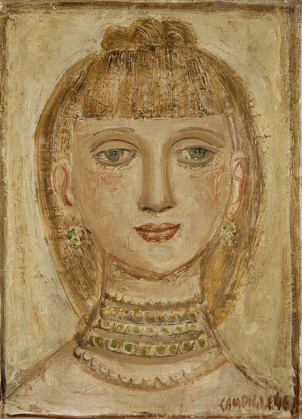 Massimo Campigli (Berlino 1895 - St. Tropez 1971) - "Testa di ragazza / Donna dalle collane" 1946 olio su tela, cm 40x29,5 Firmato e datato 46 in basso a destra Provenienza Collezione Raffaele Carrieri, Milano Collezione privata, Milano Bibliografia R.Carrieri “Voleva diventare un grande pittore” in “Colloqui”, Milano, gennaio 1957, p. 18 ill. L. Cavallo “Raffaele Carrieri. Una vita per la poesia” Milano, Rusconi, 1978, p. 152 ill. N. Campigli, E. Weiss, M. Weiss “Massimo Campigli. Catalogue Raisonné – Volume II” Milano, Silvana Editoriale, 2013, p. 551 n. 45-011 ill. (catalogato con datazione 1945)