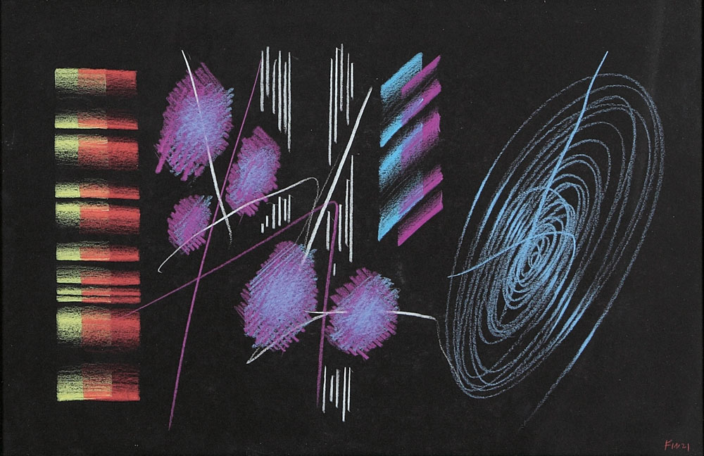 ENNIO FINZI Venezia 1931 Senza titolo, 2007 pastelli su cartoncino nero cm. 30,5x45,5; firma in basso a destra, opera registrata presso l'Archivio Ennio Finzi come da dichiarazione su foto, di prossima pubblicazione sul primo volume del catalogo generale delle opere su carta.