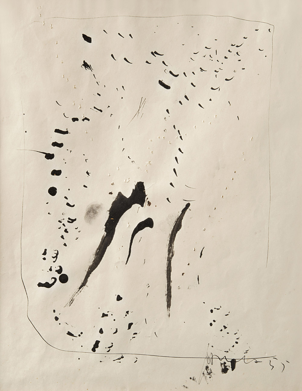 Lucio Fontana (Rosario Di Santa Fé 1899 - Comabbio 1968) - "Concetto spaziale" 1955 inchiostro e buchi su carta, cm 27,5x21,5 Firmato e datato 55 in basso a destra Provenienza Collezione Russoli, Milano Collezione privata Opera registrata presso l'Archivio Lucio Fontana, Milano con il n. 1465/13