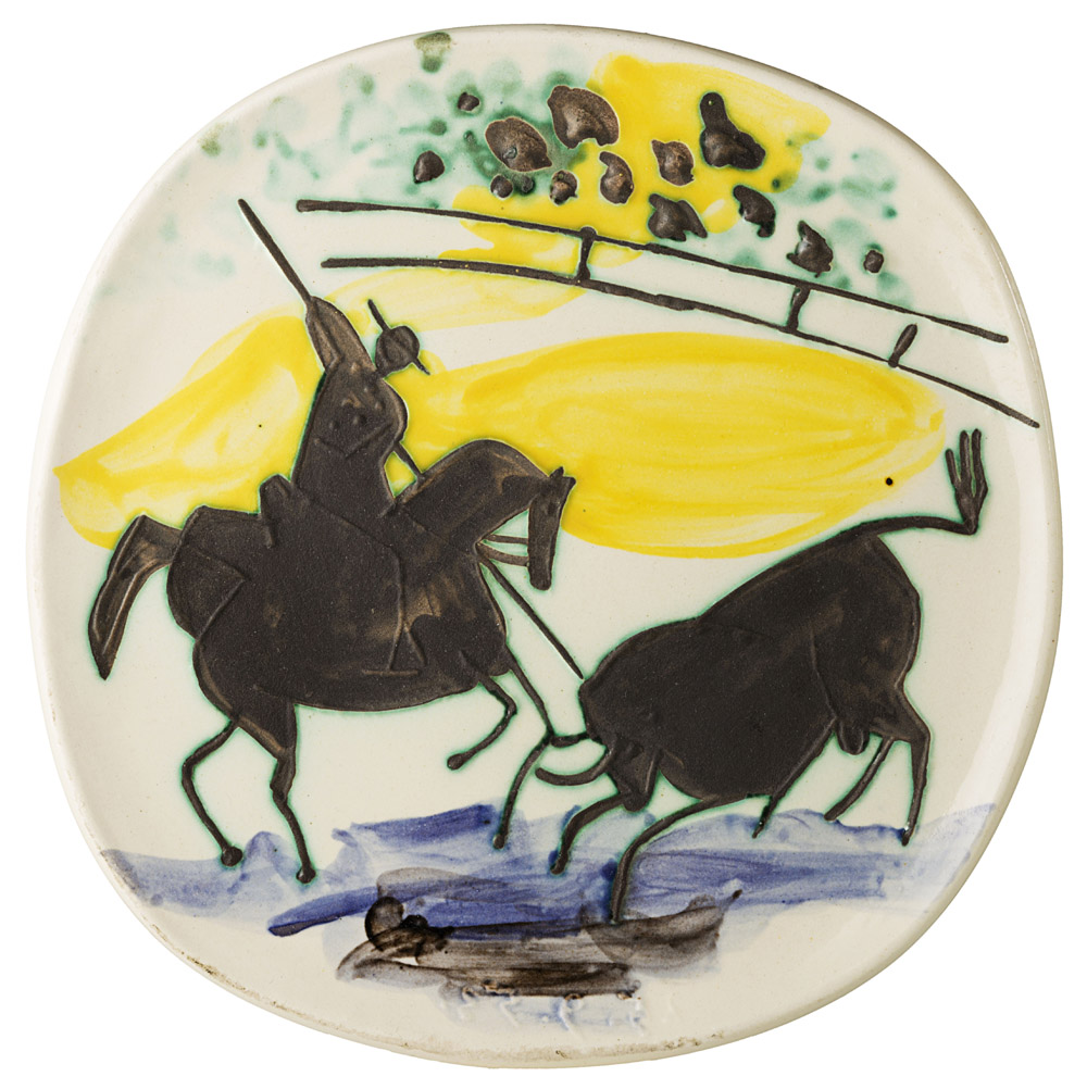 Pablo Picasso (Malaga 1881 - Mougins 1973) - "Picador et taureau" 1953 piatto in ceramica parzialmente smaltata, cm 24,7 Datato 25.9.53 e numerato es. 140/200 Edizione Picasso Madoura Plein Feu