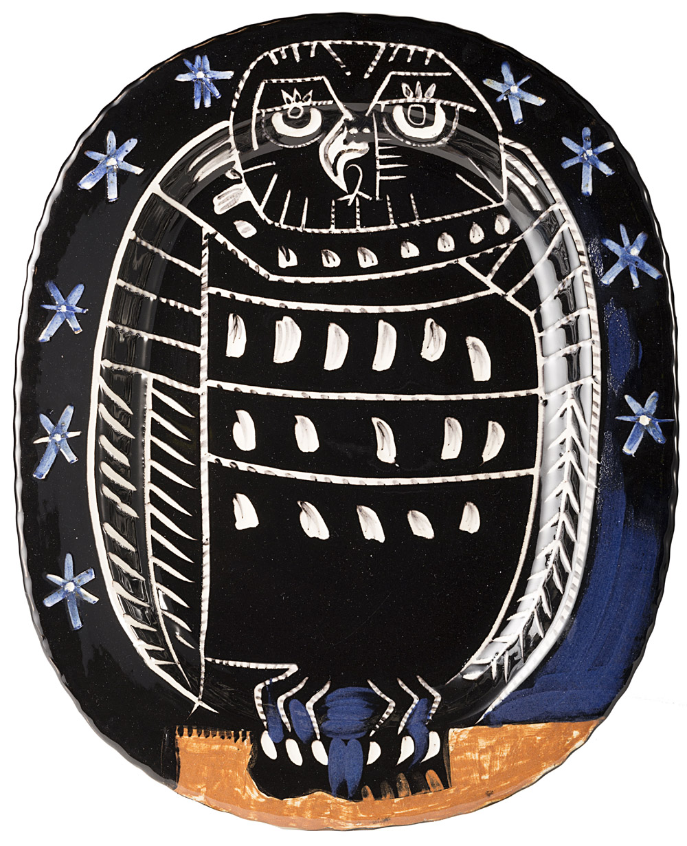 Pablo Picasso (Malaga 1881 - Mougins 1973) - "Hibou brillant" 1955 piatto in ceramica smaltata, cm 38,9x31,5 Edizioni Picasso Madoura Plein Feu