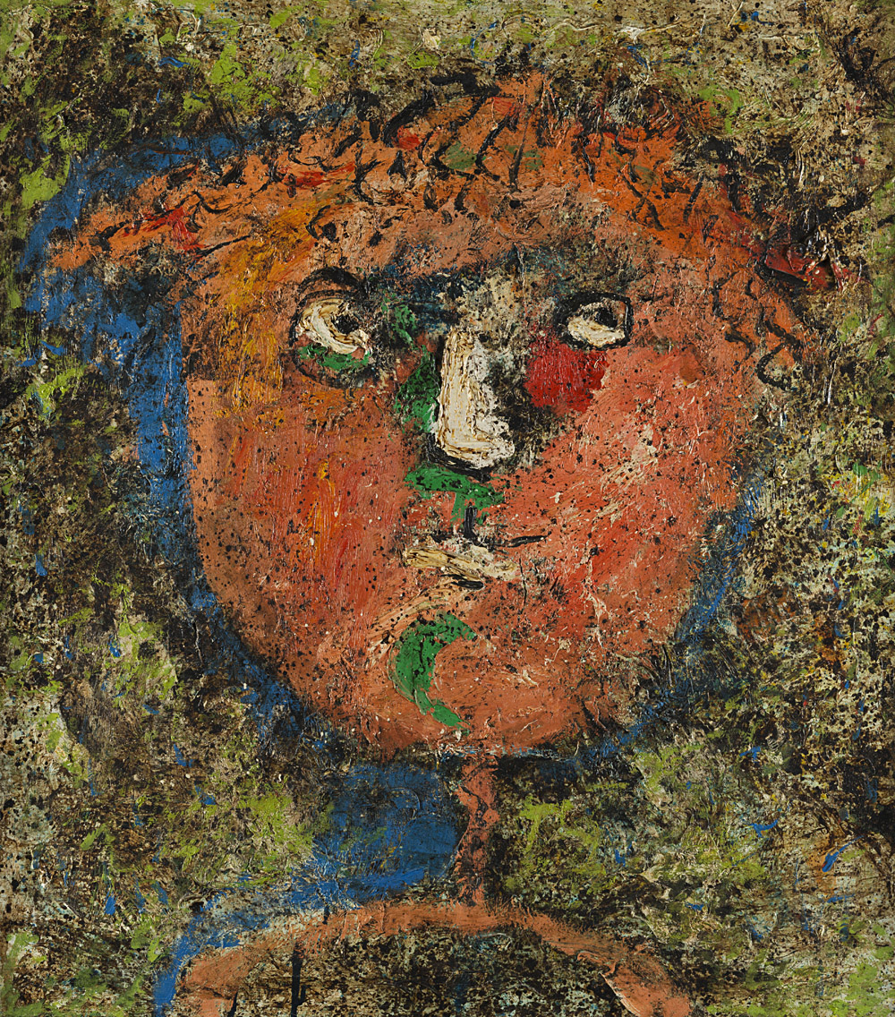 Enrico Baj (Milano 1924 - Vergiate 2003) - "Personaggio" 1957 olio su tela, cm 80x70 Firmato e datato 57 al retro Provenienza Galleria Schwarz, Milano Collezione privata, Milano Bibliografia E. Crispolti "Catalogo Generale dell'opera di Enrico Baj", Bolaffi, Torino 1973, p. 57 n. 322 ill. Esposizioni "Alternative attuali 2", Castello Spagnolo, L'Aquila luglio-settembre 1965 "Baj" Palazzo Grassi, Venezia 25 giugno-30 settembre 1971