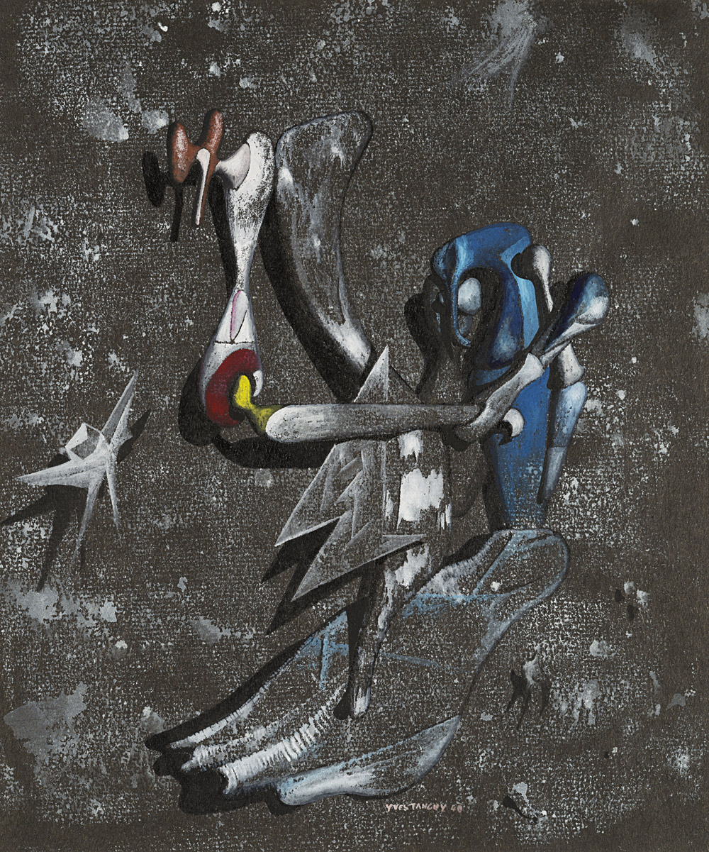Yves Tanguy (Parigi 1900 - Woodbury 1955) - "Senza titolo" 1940 gouache su carta, cm 28x24 Firmato e datato 40 in basso al centro Provenienza Collezione M. et Mme Henri Hoppenot, Parigi Galerie Natalie Seroussi, Parigi Collezione privata Esposizioni "Gouaches de Tanguy et Sculpture de Brauner", Galerie des Cahiers d' Art, Parigi, 16 luglio-9 agosto 1947 Bibliografia P. Waldberg "Yves Tanguy" Bruxelles, Andre De Rache, 1977 P. Matisse, "Yves Tanguy un recueil de ses oeuvres", New York, 1963, p. 122 n. 269 ill.