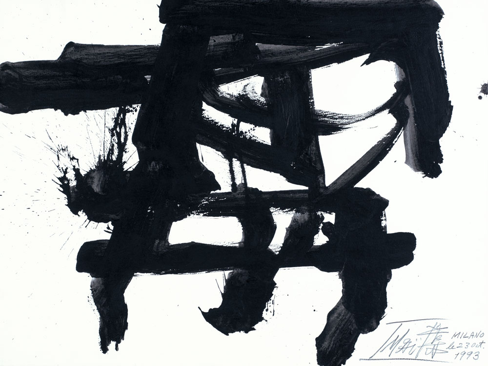 TOSHIMITSU IMAI Kyoto (Giappone) 1928 - 12/2001 Senza titolo, 1993 tecnica mista su carta cm. 57x67, firma, anno e località (Milano) in basso a destra, timbro per garanzia e provenienza dell'Idearte di Mattia Tosetti (MI) su foto.
