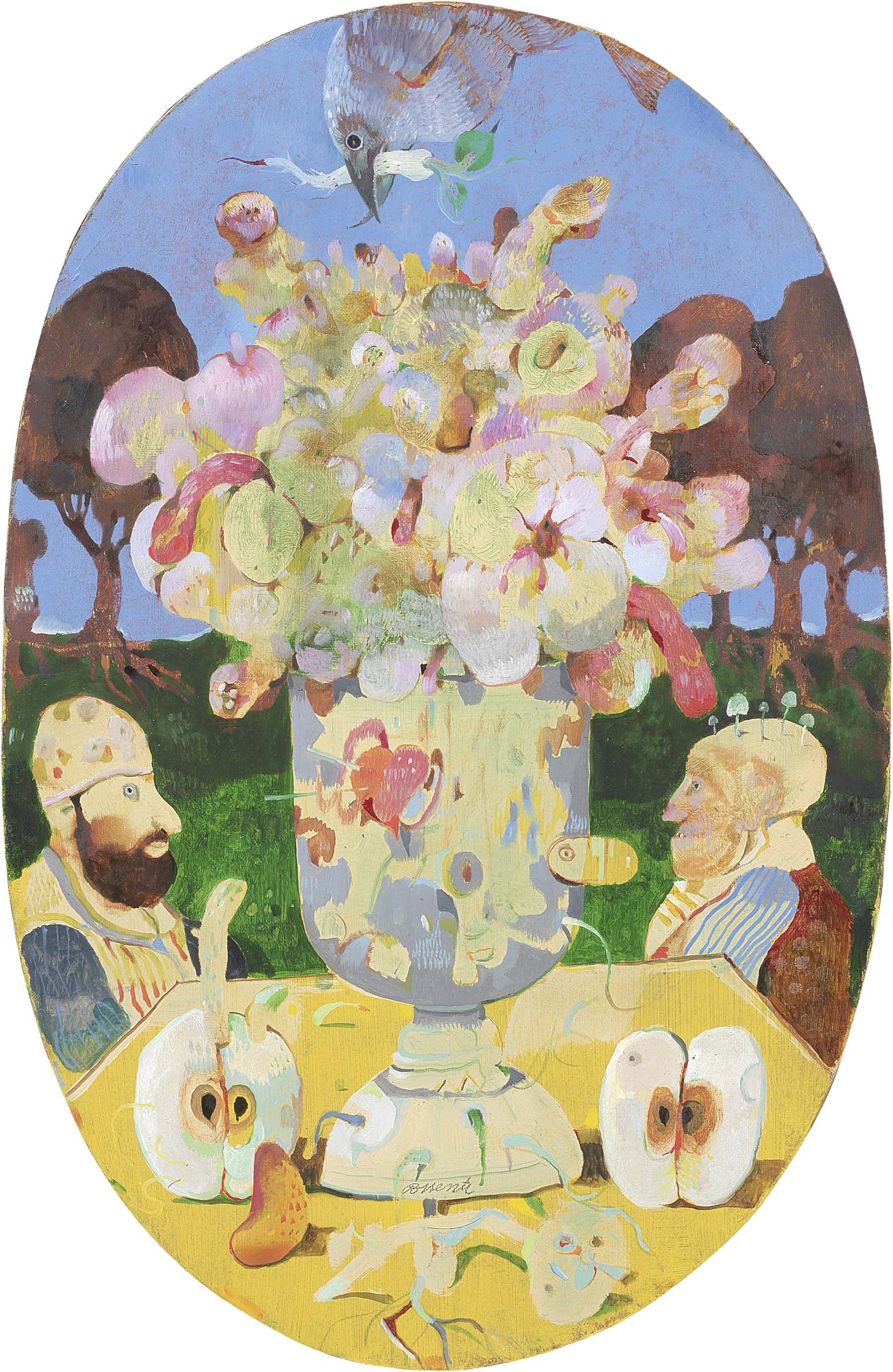 Antonio Possenti Lucca 1933 Senza titolo Olio su faesite, cm. 47x30,6, ovale...